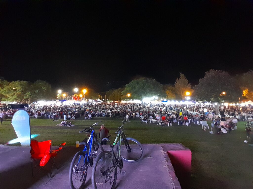 El evento se llevó a cabo en el predio de la Vieja Iglesia de Gálvez, donde una gran cantidad de vecinos y visitantes se acercaron para disfrutar de una noche especial que combinó gastronomía, música y encuentro comunitario.