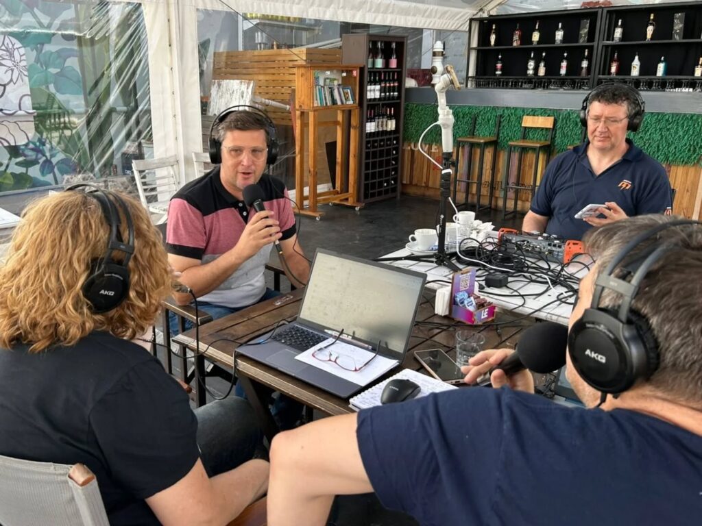 En el marco de La Noche de Gálvez, la ciudad también fue escenario de un programa especial de radio, producido durante la mañana desde Bar La Estación. Allí, Mario Galoppo y Carina Bolatti, reconocidos periodistas de la ciudad de Santa Fe, llegaron a Gálvez con su programa “Punto de Partida”, llevando la magia de la radio a toda la provincia.