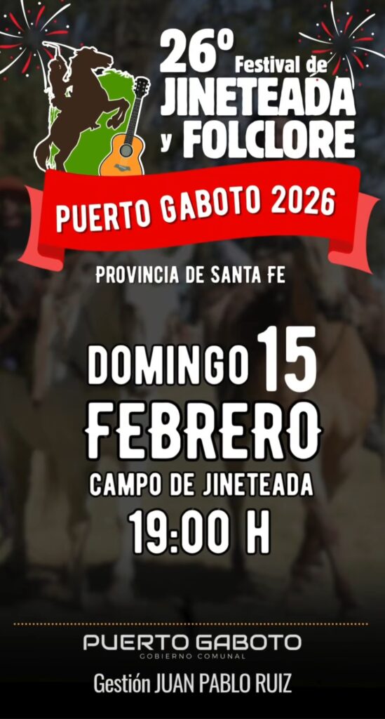 Domingo 15 de febrero, Puerto Gaboto, en la provincia de Santa Fe, será escenario de una de las fiestas criollas más importantes de la región: la Gran Jineteada en Clinas y Bastos, un evento que reunirá coraje, tradición y música popular desde las 19 horas.